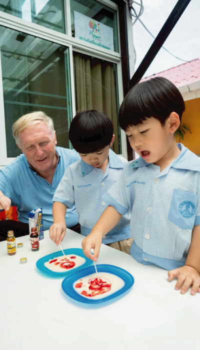 : ทางโรงเรียนจะแนะนำความรู้ ตั้งวิธีการทำหรือตั้งคำถามและให้นักเรียนหาคำตอบ