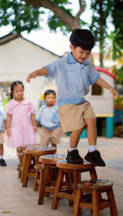 ทางโรงเรียนหลักสูตรการเรียนของนักเรียนชั้นอนุบาล สำหรับเด็กอายุระหว่าง 3-5 ขวบ โดยเน้นการสอนทักษะชีวิต และพื้นฐานวิชาการ โดยฝึกหัดการพึ่งพาตนเองในชีวิตประจำวัน ซึ่งมีหลักการสอน 6 ด้าน ได้แก่